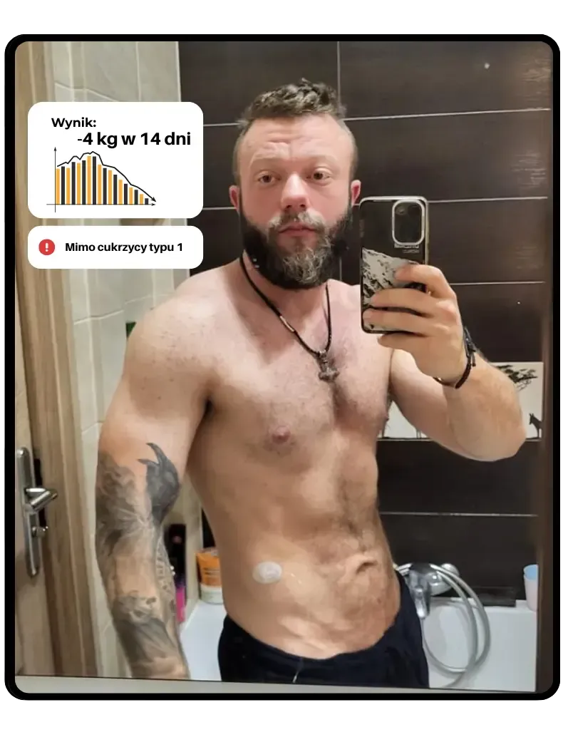 "Mam 33 lata, sporty siłowe trenuję już parę lat. Choruję na cukrzycę typu 1wszego przez co redukcja zawsze była u mnie mozolna, długo trwała i finalnie kończyła się zawsze nie satysfakcjonująco.